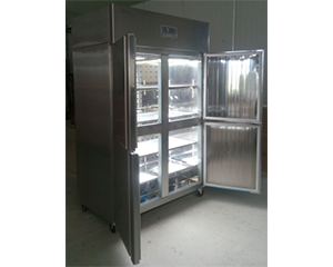 1、內(nèi)膽采用鏡面不銹鋼,外殼也為不銹鋼材質(zhì)。箱內(nèi)擱板間距可調(diào),擱板支架可以自由裝卸,便于箱內(nèi)的清洗工作。